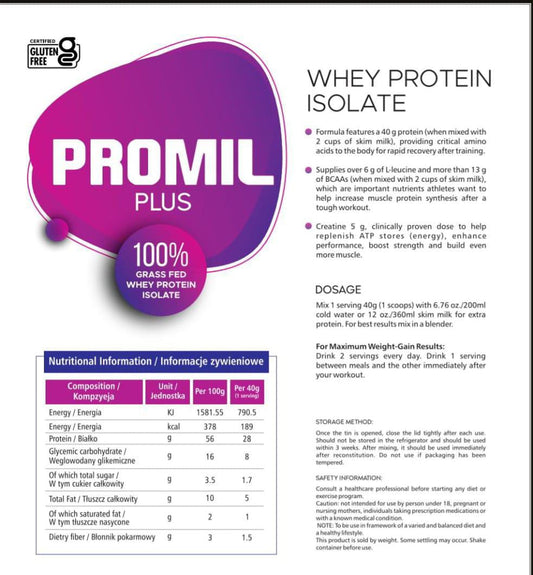 Promil Plus 1000g 100% Grass-Fed Whey Protein Isolate